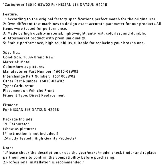 Carburetor 16010-03W02 For NISSAN J16 DATSUN H221B