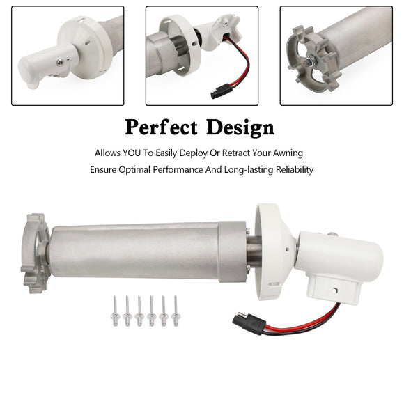 Perfect Design - 12V DC power source, white end cap and 5"L wire lead with connector. Allows you to easily deploy or retract your awning. Let you enjoy the great outdoors and fresh air even more whether it's rain or sunshine.
