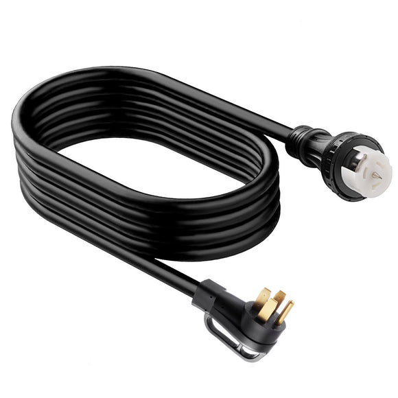 12500W High Performance - The cord has a configuration of 50 amp 125/250 volts with a max rating of 12500 watts. With these traits, our locking power cord allows you to connect the campground or park power to your RV, Motorhome, Trailer, or vehicle with a built-in CS6364 inlet.